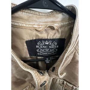 Blanc Noir Tan Faux Leather Zip Up Collared Jacket