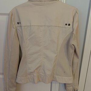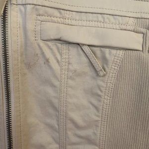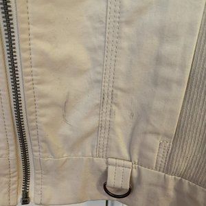 Women's size medium moto jacket. 2 pockets on the front chest. Pictures show a few stains/marks. Needs a lint rolling.