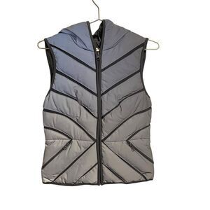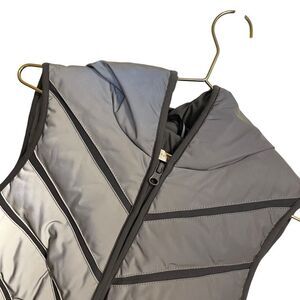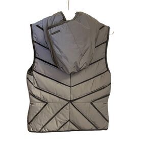 Carbon38 Blanc Noir Mesh Inset Puffer Vest Reflective. Perfect combo of warmth, ventilation, & visibility, this hooded vest from Blanc Noir fall/winter/spring weather do-it-all. The chevron design provides a slimmer take on the traditional bulky puffer vest look, each panel separated w mesh insert provides cooling to ensure you don't get overheated on your run! Perfect for outdoor activities running hiking climbing etc!