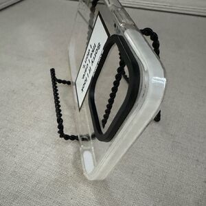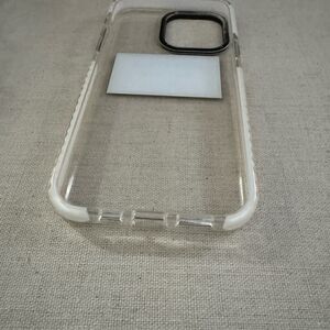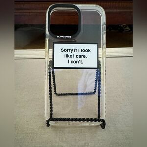 Blanc Space clear iPhone 14 Pro Max case. Clear hard back with text in black lettering. This is the most advanced clear case imaginable, complete with MagSafe® compatible technology, ATP® drop protection and a crystal clear backplate. A few hairline scratch marks from normal use. Not visible when on the phone.