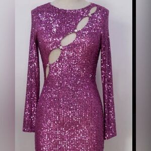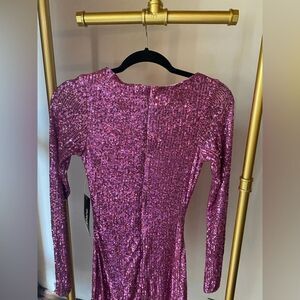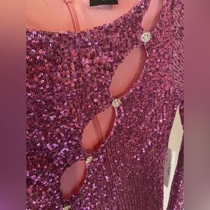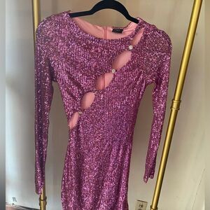 Blanc pink dress in sequins and buttons with crystals long sleeve New