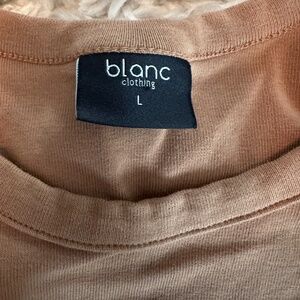 Blanc dress bought at a boutique, in a butterscotch color that is sized in Large but def fits like a Small. In good preowned condition