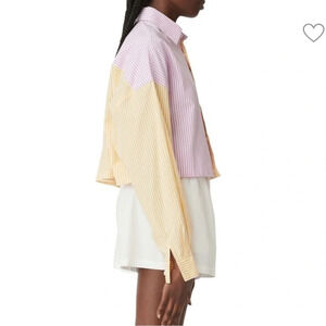 Blanca - Thomas Cropped Striped Shirt - Yellow/Pink/White - Size M/L