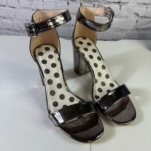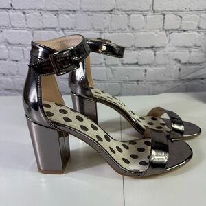 Blanco silver ankle strap size 7.5 open toe Dressy 3” chunky block heels