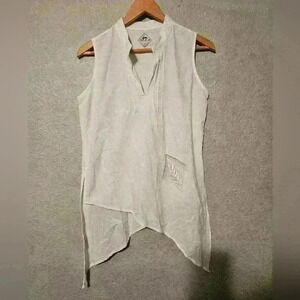 BLANC DU NIL White Cotton Artsy Button Asymmetric Top Size T2