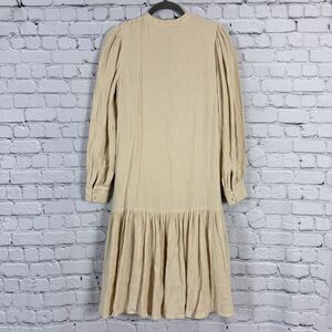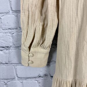 Bl_ank Gauze Crinkled Cotton Dress Long Sleeves Beige Women's S Boho Cottagecore.