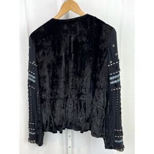 Blank London Sz M Anthropologie Embellished Velvet Jacket Full Zip Peplum Black
