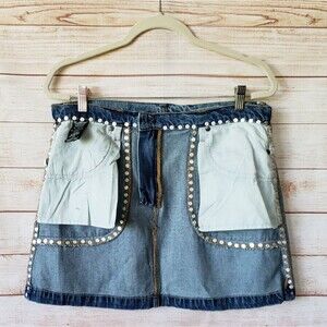 Blank NYC 100% Cotton Studded Denim A-Line Mini Skirt