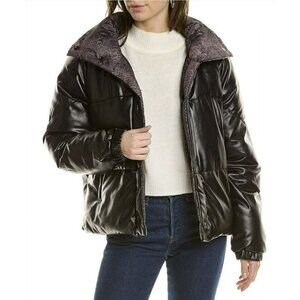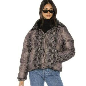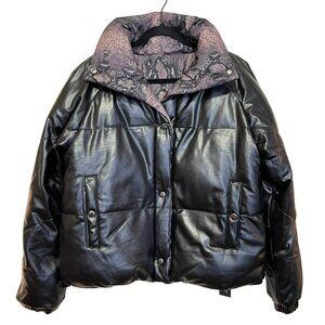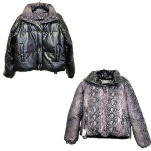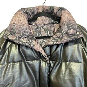 Blank NYC $198 Reversible Puffer Jacket Black Snakeskin Size Small NWT