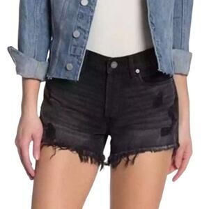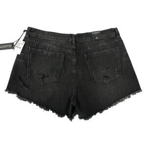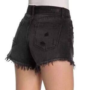 Blank NYC (32) Washed Black Button Front Distressed Hem High Rise Shorts