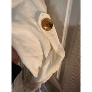 Casual cargo style jacket from Nordstrom by BlankNYC in an off white soft Above the clouds color. Great piece for layering or bringing some style to a casual outfit. Buttons up with large buttons that are easy to use. Rolltab sleeves and cords at bottom to help with fit, Size Med is very generous for a relaxed fit. NWT