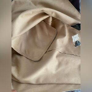 long jacket size 2X is in gray and brown squares and closes with a button, the texture of the jacket is plasticized on the outside, it is very soft and new with tags