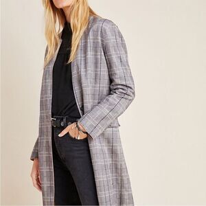 Blank NYC Anthropologie Jacket Women Size 2X Renegade Gray Brown Plaid Longline