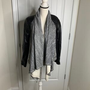 Blank NYC Anthropologie color block faux leather open front jacket size medium