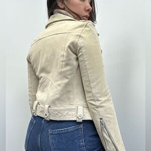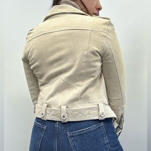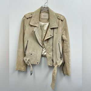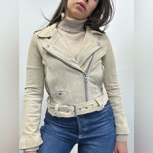 Blank NYC Beige Tan Suede Moto Biker Jacket Belted Zip Front Silver Hardware S