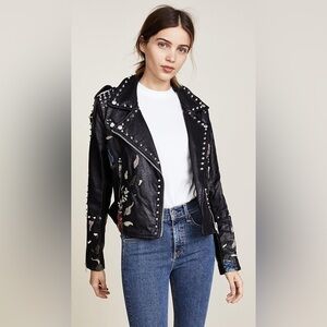 Blank NYC Black Budding Romance Floral Studded Vegan Leather Jacket sz S