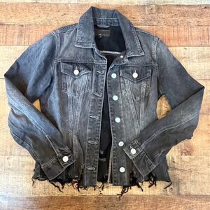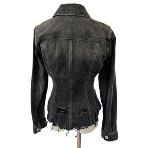 Blank NYC Black Denim Distressed Jean Trucker Jacket Button Front Small Cotton