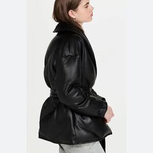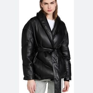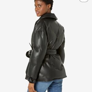 Blank NYC Black Faux Leather Puffer Jacket with Belt Closure