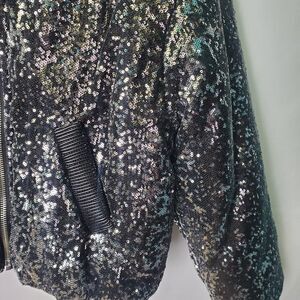 Blank NYC Black Sequin Bomber Jacket Quilted Lining Size Small