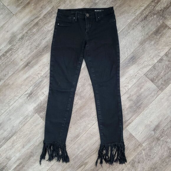 Blank NYC Black Fringe Super Fray Bottom Skinny Jeans.