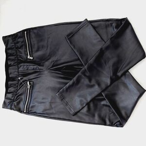 Blank NYC Black Vegan Leather Classic Look Skinny Zip Pockets Moto Pants P1085
