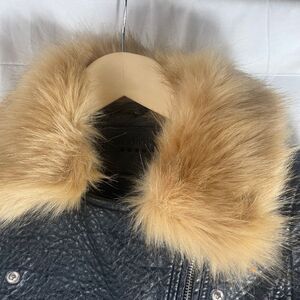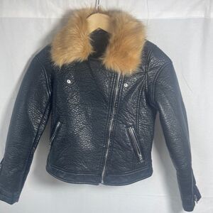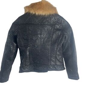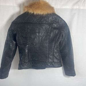Blank NYC Black Vegan Textured Leather Detachable Fur Collar Moto Jacket Sz M
