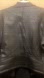 Chic black leather jacket by Features gold zippers and buttons. Adds a bold statement to your wardrobe.