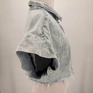 Blank NYC Bleach Washed Button Up Crop Shirt Size Small