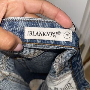 Blank NYC Blue Denim Skirt with Rhinestone Fringe