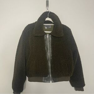 Cozy teddy jacket by Blank NYC. Features a rich brown color. Perfect for layering.