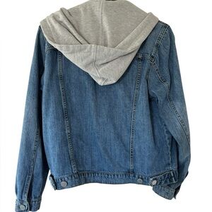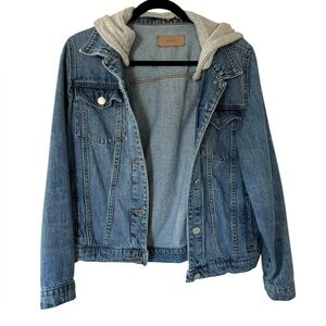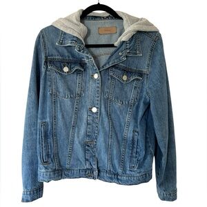 Blank NYC Casual Encounter Denim Trucker Jacket with Detachable Hood blue gray M