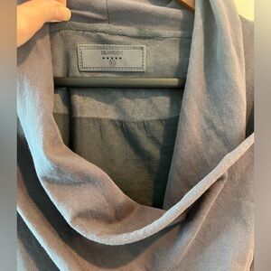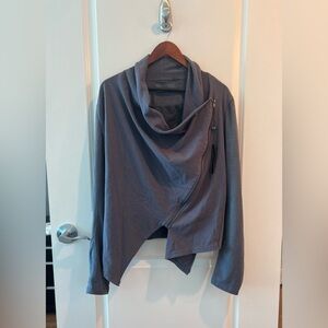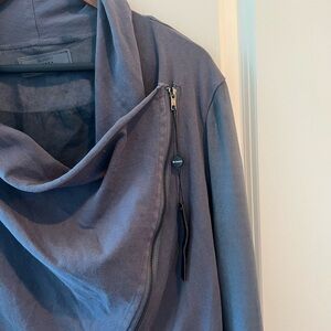 Wear open for a draped waterfall look Wear zipped for a more edgy style