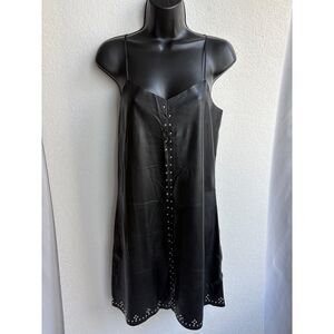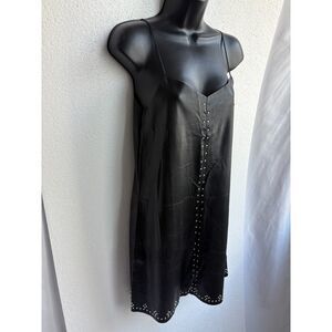 Blank NYC Close The Deal Embossed Vegan Leather Black Stud Slip Dress Size S