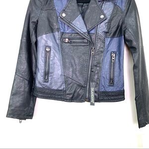 Blank NYC Color Block Patch Faux Leather Jacket xs