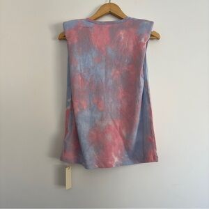 Blank NYC Cotton Tie-Dye Padded Shoulder V-Neck T-Shirt New With Tags Size: S