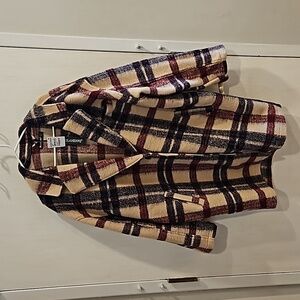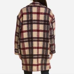 Blank NYC Cream Maroon Wool Oversized Go Ahead Plaid Longline Teddy Jacket L NWT