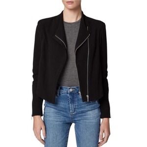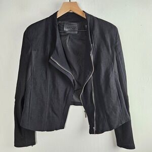 Blank NYC Crepe Mesh Mixed Media Moto Jacket L Black Double Zip