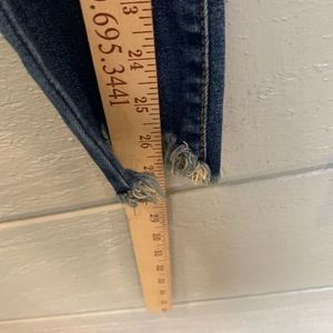 Add some edge to your distressed crop skinny jeans with a frayed hem. Fit: this style fits true to size. - Zip fly with button closure - 5 pocket style - Light distressing, whiskering and fading - Frayed hem - Approx. 8.5" rise, 27" inseam - Imported
