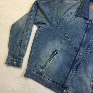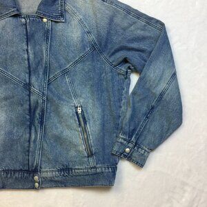 Blank NYC Denim Moto Jacket Mens Sz L Blue Jean Zip Up Vintage 80s Elastic Waist