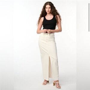 Blank NYC Denim Maxi Slit Skirt Sz 26 Ecru Off White