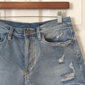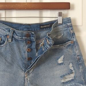 Blank NYC Distressed Medium Wash High Rise Cut Off Jean Shorts Hollyweird 28