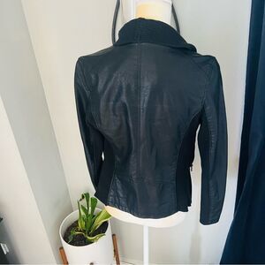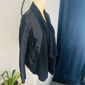 Blank NYC Drape Front Open Waterfall Faux Leather Wrap Moto Jacket