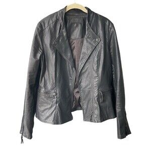 This tailored biker-babe jacket is constructed with detailed seaming. It has allover zip accents that bring the urban edge, while a slim, feminine cut complements your curves. Size L. Excellent used condition.