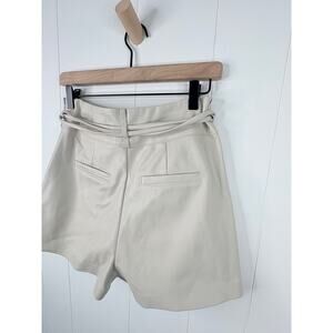 Blank NYC Faux Leather Pleated High Rise Shorts Size 26 Cream Ivory Tie Waist