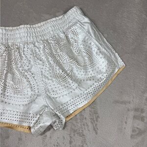 Blank NYC Faux Leather Silver Laser Cut Floral Elastic Waist Shorts Size 25