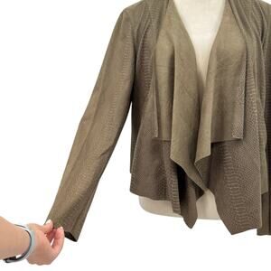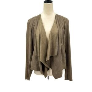 Blank NYC Faux Suede Brown Green Snake Reptile Draped Open Jacket Cardigan