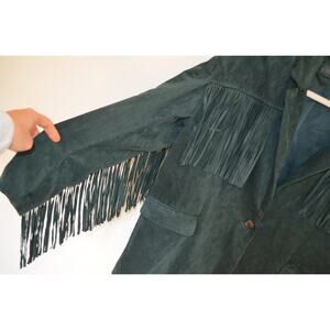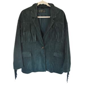 Blank NYC Faux Suede Fringe 'Deep Dive' Green Blazer Jacket Size Medium