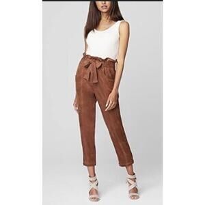 Elevate your wardrobe with these stunning Blank NYC Faux Suede Stretch Paper Bag Crop High Waist Carmel Belted Pants in size 27. These pants are perfect for any occasion from casual to party/cocktail. The beautiful brown color and solid pattern make them a versatile piece that can be paired with any top.