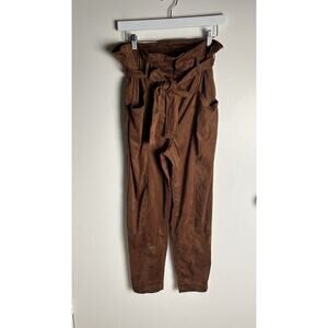 Blank NYC Faux Suede Stretch Paper Bag Crop High Waist Carmel Belted Pants Sz 27