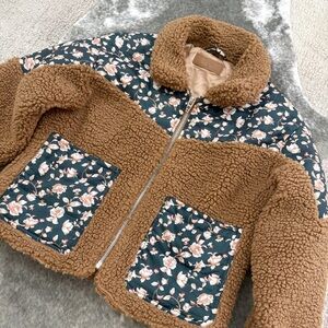 Here’s a super cute and cozy jacket by Blank NYC. This is the Floral Quilted Trim Fleece Jacket in a size small. Great condition. Love the Teddy Bear style. Perfect for the upcoming cooler weather. :)